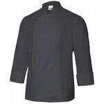 60% cotone, 40% poliestere. giacca da cuoco unisex con chiusura a incrocio sul davanti. la giacca si chiude con dieci bottoni a pressione per vestibilità e praticità. collo alla coreana con cuciture laterali.