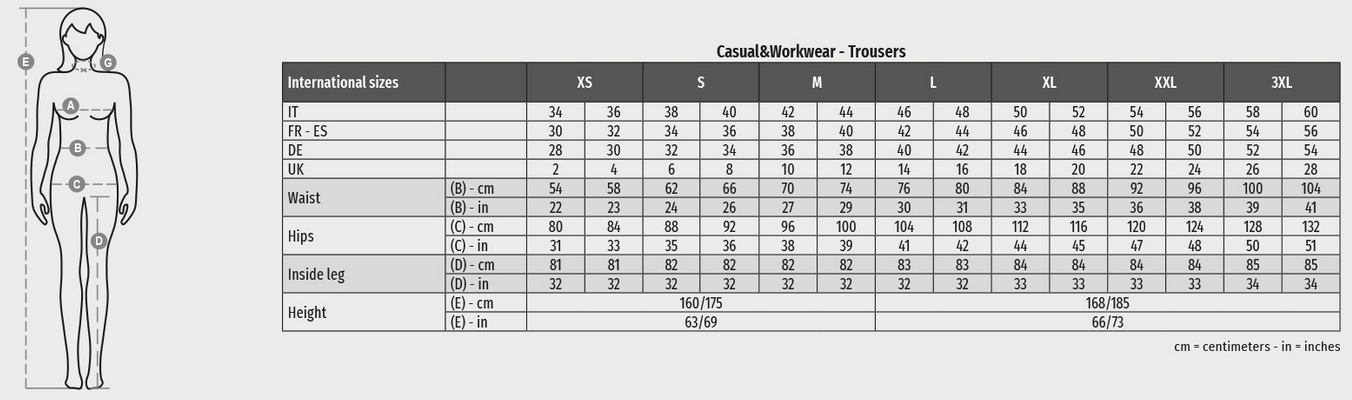 Bermuda donna, elastici laterali e passanti in vita, chiusura con zip e bottone in metallo, due tasche anteriori a taglio classico, due tasche laterali con patta e bottoni automatici, una tasca con zip lato sinistro, un portametro a scomparsa lato destro, due tasche posteriori a filo con asola e bottone. 100% cotone 210g/m2